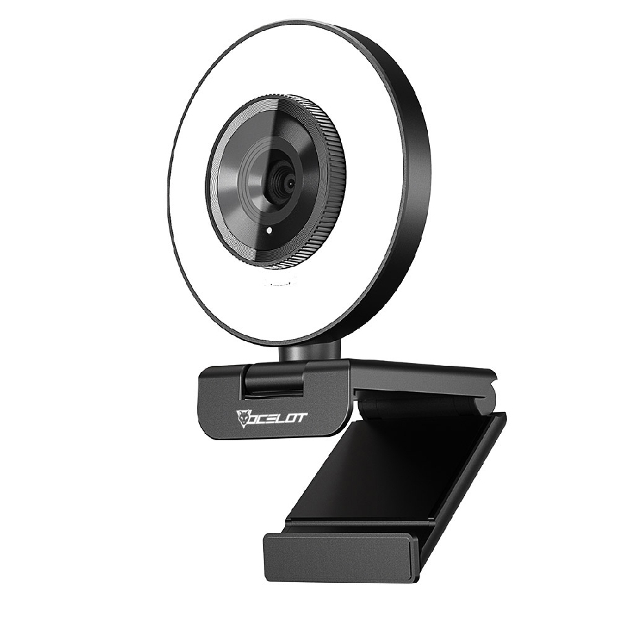 Camara web ocelot para streming -full hd 1920×1080 (reales)-60 fps (cuadros por segundo)-microfono incluido -aro de luz y 3 tonalidades de iluminacion ajustables-mecanismo de privacidad para el lente. -autofocus incluido