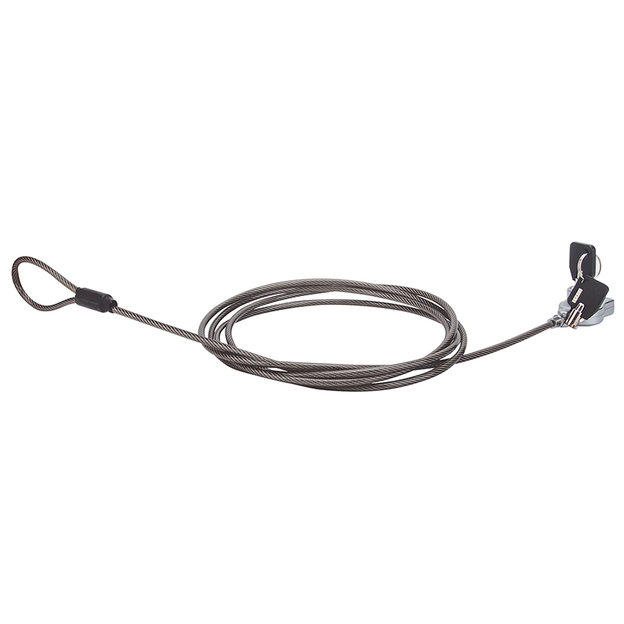 Highlightspreviene el robo de las computadoras portátiles y otros equipos valiososse ajusta a ranuras de seguridad wedge de computadoras y de otros dispositivos para asegurarlas a escritorios u otros objetos estacionarioscable de acero resistente y sólido, construcción completamente metálicaprotege equipos electrónicos en casa, oficina y escuela ideal para viajes