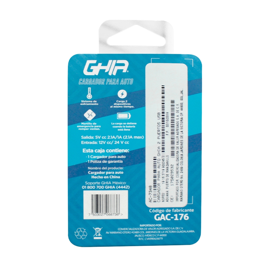 Sé el primero en opinar "Cargador Para Auto Ghia 2 Puertos USB"