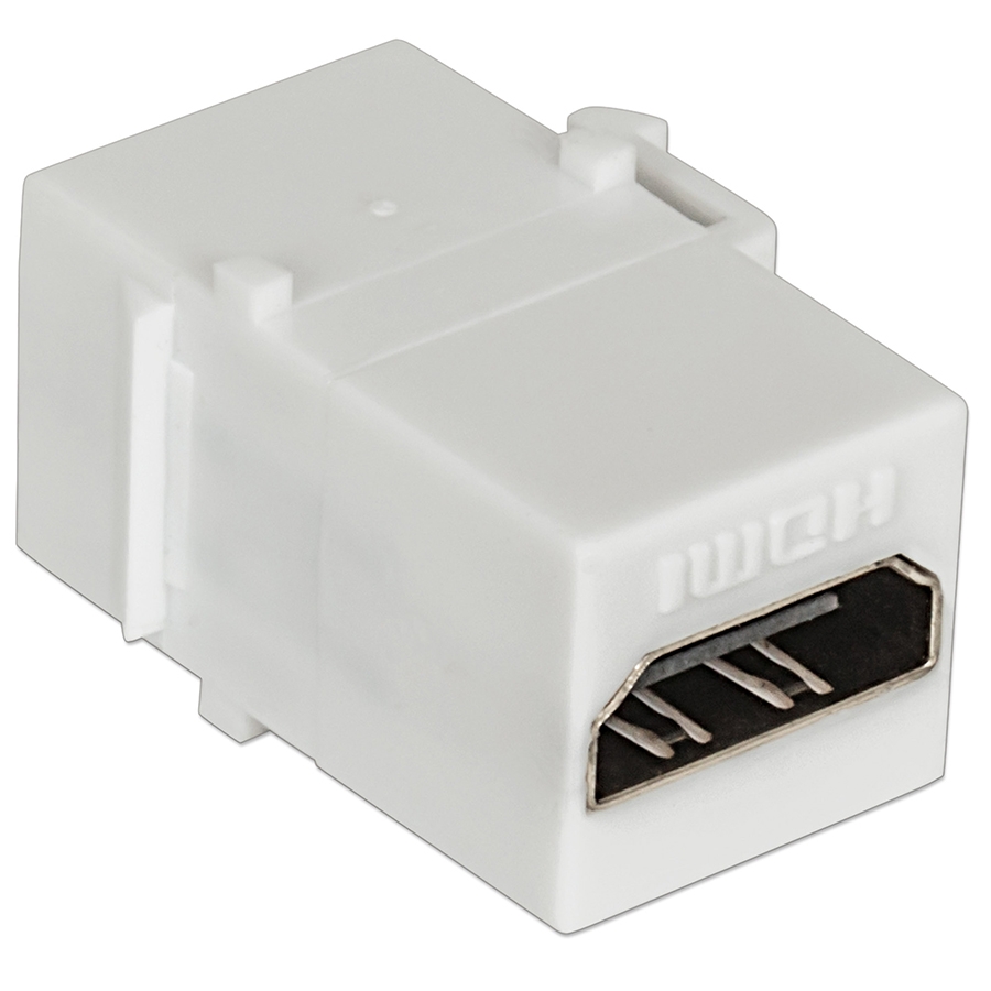 Cople keystone HDMI, HDMI hembra a HDMI hembrapara su instalacion en muros con cables HDMI cl2 u otros calificados para estar dentro del murocompatible con paneles de parcheo, tapas y cajas de paredsoporta resolucion de alta definicion hasta 4kideal para cine u oficina en casacontactos con chapa de oro de 3 micras
