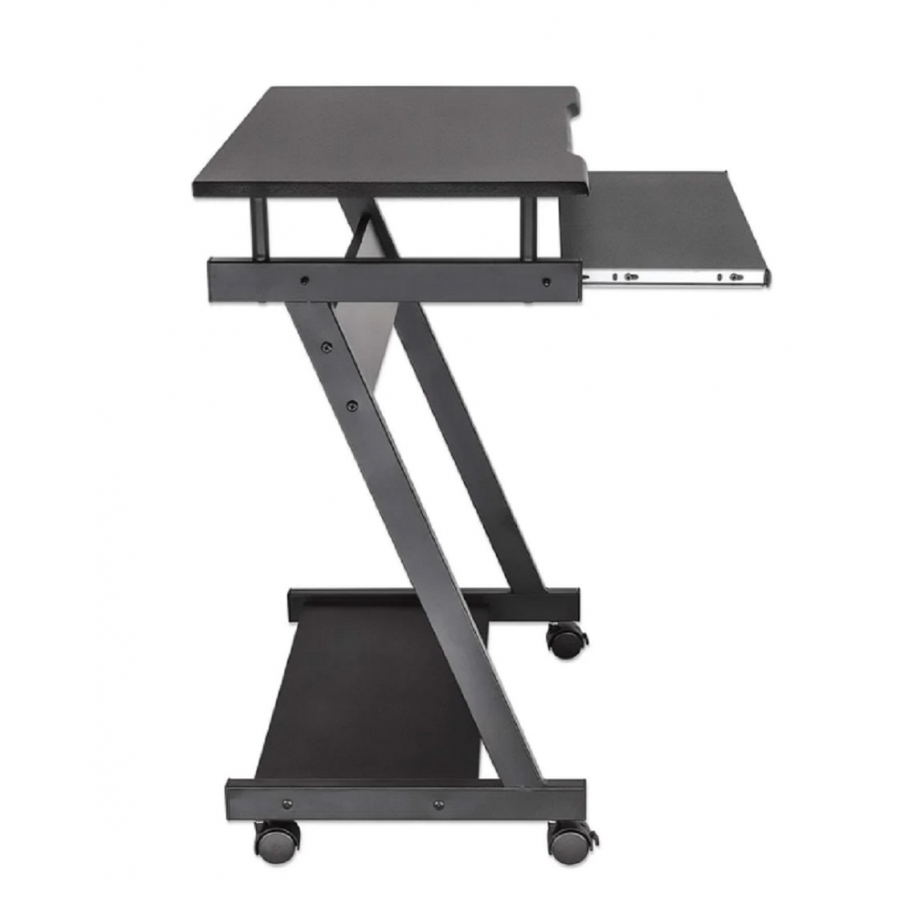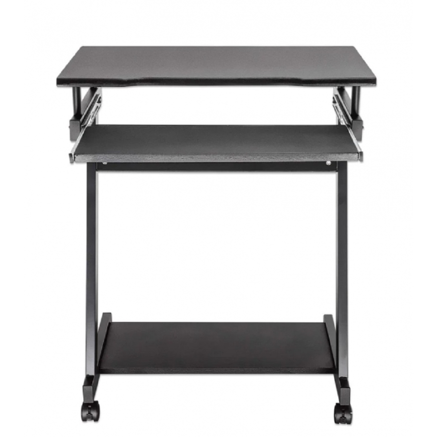Escritorio,Manhattan,207690, Compacto Negro Con Ruedas Y Bandeja Para Teclado, Repisa Inferior Para Cpu