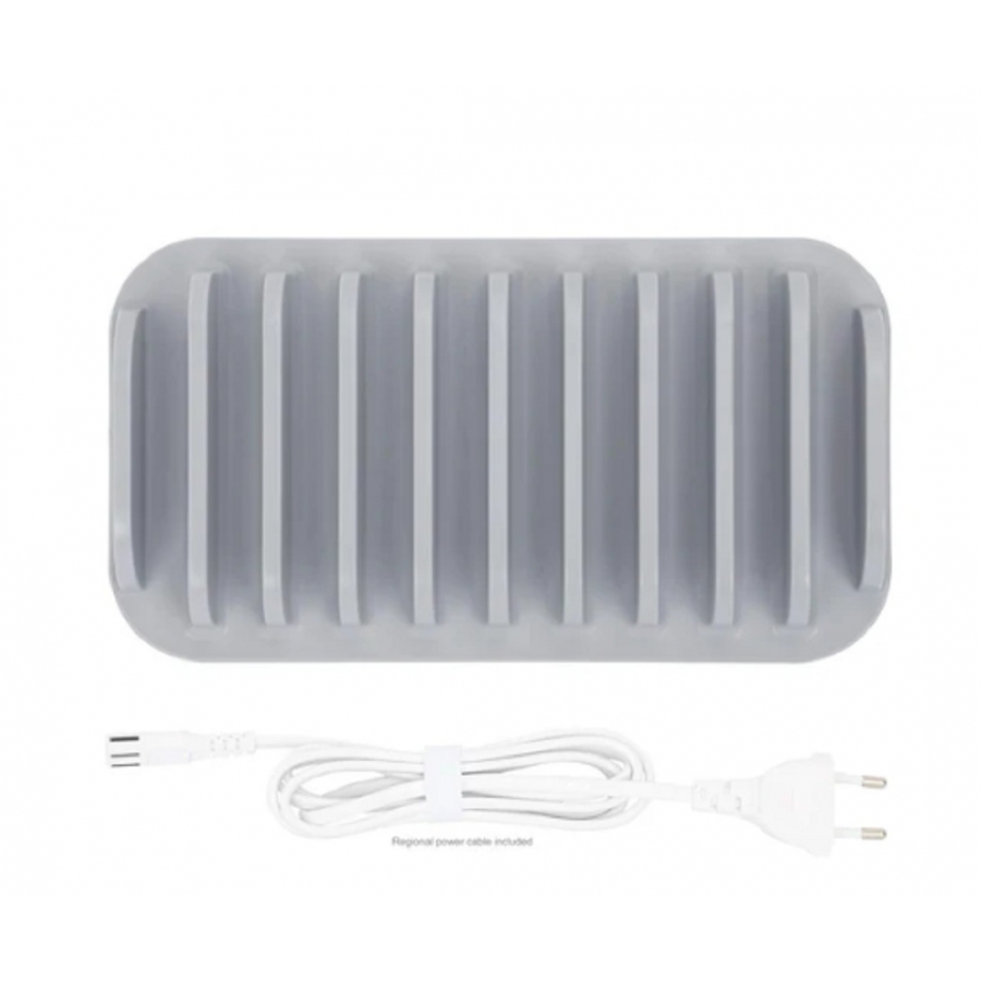 NORMAS Y CERTIFICACIONES- CE- ROHS- REACH- FCC- ETL- UKCAELéCTRICO- ENTRADA DE CA: 100.0 – 240.0 V; 2.0 A; 50/60 HZ- AJUSTES DE VOLTAJE/CORRIENTE (MáXIMO):- SALIDA USB-C PD 18.0 W:- 5.0 V / 3.0 A- 9.0 V / 2.0 A- 12.0 V / 1.5 A- USB-A 12,0 W DE SALIDA:- 5.0 V / 2.4 A- POTENCIA NOMINAL: 120.0 W (MáX.)- TENSIóN DE SOBRECARGA: ≤5%.- LOS DISPOSITIVOS COMPATIBLES SON, ENTRE OTROS: IPHONE® 13, 13 PRO, 13 PRO MAX, 13 MINI, SE 2022, 12, 12 MINI, 12 PRO, 12 PRO MAX, X, XS, XS MAX, XR, 8 PLUS, 8; IPAD® 10,2 / IPAD MINI® 8,3 / IPAD PRO® 12,9 / IPAD PRO 10. 5 / IPAD PRO 11 / IPAD MINI 5, SAMSUNG® GALAXY S22, S22 ULTRA, S21, S20, S10, S10 PLUS, S10E, S9, S9 PLUS, NOTE 9, S8, S8 PLUS, NOTE 8, S7 EDGE, S7, S6 EDGE PLUS, NOTE 5; GOOGLE PIXEL 6, 6XL, 5, 5XL, 4, 4 XL, 3, 3 XL; LG V60 THINQ, V50 THINQ, V50, V40 THINQ, V35, V30+, V30, G8 THINQ, G8, G6; AIRPODS® Y AIRPODS PRO®, TELéFONOS DE HUAWEI®, ASUS®, SONY® Y MáS.CARACTERíSTICAS DE PROTECCIóN- CORTOCIRCUITO (SCP) CON MODO DE RECUPERACIóN AUTOMáTICA- SOBRETENSIóN (OVP) CON MODO DE RECUPERACIóN AUTOMáTICA- SOBRECORRIENTE (OCP) – LíMITE DE CORRIENTE: 150% (MáX.)- SOBRETEMPERATURA (OTP)FíSICO- DIMENSIONES (L X W X H): 235 X 128 X 83 MM (9.25 X 5.04 X 3.27 IN.)- ANCHURA DEL COMPARTIMENTO: 15 MM (0.6 PULGADAS)- PESO NETO: 772 G (1.7 LBS.)- PESO BRUTO: 848 G (1.87 LBS.)- CARCASA: PLáSTICOENTORNO DE FUNCIONAMIENTO- TEMPERATURA DE FUNCIONAMIENTO: 0 – 40°C (32 – 104°F)- TEMPERATURA DE ALMACENAMIENTO: -20 – 80°C (-4 – 176°F)- HUMEDAD (SIN CONDENSACIóN) 5 – 90%CONTENIDO DEL PAQUETE- ESTACIóN DE CARGA DE 10 PUERTOS USB – 120 W- CABLE DE ALIMENTACIóN, 1.5 M (5 PIES)- INSTRUCCIONES DE USO
