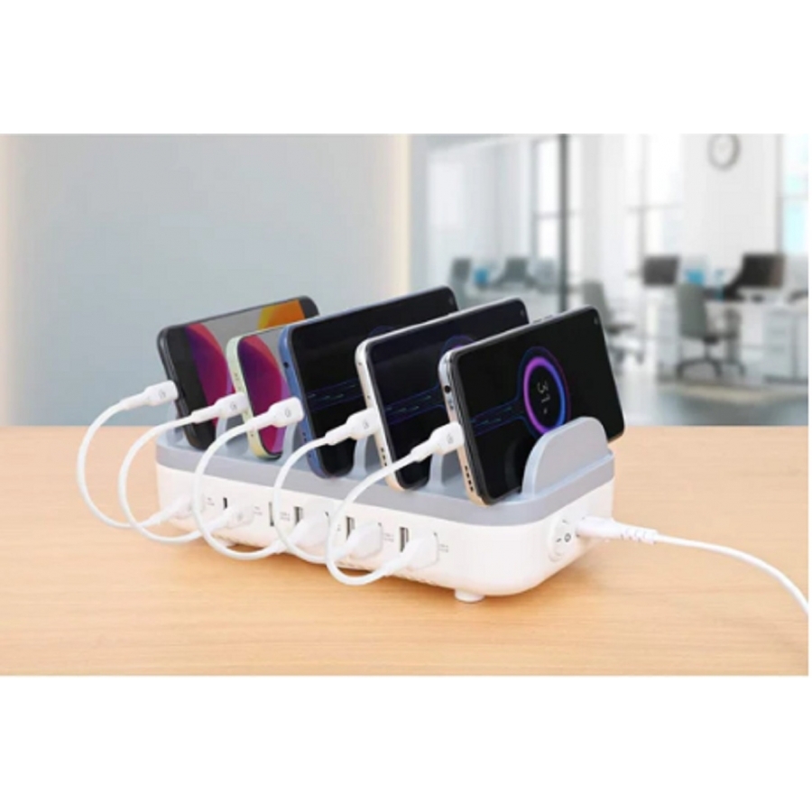 ESTACIóN DE CARGA PARA ESCRITORIO: ALIMENTACIóN INTELIGENTE Y RáPIDA PARA DISPOSITIVOS USB-C Y USB-ALA ESTACIóN DE CARGA USB DE 10 PUERTOS DE MANHATTAN ES IDEAL PARA ALIMENTAR DE ENERGíA POR USB – TABLETAS, TELéFONOS, CáMARAS, AURICULARES BLUETOOTH Y CONSOLAS DE VIDEOJUEGO PORTáTILES – Y MANTENERLOS CARGADOS Y LISTOS PARA FUNCIONAR. SóLO CONECTA ESTA BASE A UNA TOMA DE CORRIENTE ELéCTRICA Y OFRECERá UNA CARGA RáPIDA, POR LO QUE ES PERFECTA PARA EL HOGAR, LA ESCUELA Y LA OFICINA. PARA AYUDAR A LA ORGANIZACIóN DE TUS DISPOSITIVOS INCLUYE DIEZ AMPLIAS BAHíAS QUE SE AJUSTAN A LA MAYORíA DE LOS DISPOSITIVOS, MANTENIENDO LA BASE LIMPIA Y LIBRE DE DESORDEN.ADEMáS, TE QUEDARáN ALGUNOS CARGADORES USB LIBRES PARA QUE ENTONCES LOS GUARDES EN EL MALETíN DEL LAPTOP, EL BOLSO, LA MALETA O LA MOCHILA, PARA CUANDO NECESITES CARGAR DISPOSITIVOS FUERA DE CASA O DE LA OFICINA.CARGA SEGURA Y DE ALTA POTENCIA DE MANERA SIMULTANEA EN 10 PUERTOSESTA ESTACIóN DE CARGA ES ULTRAPOTENTE, CON 10 PUERTOS QUE PROVEEN UN TOTAL DE 120 WATTS DE POTENCIA, LO QUE SIGNIFICA UNA CARGA SIMULTáNEA CON MAYOR POTENCIA PARA TUS DISTINTOS DISPOSITIVOS. UN CHIP INTELIGENTE ADAPTATIVO DETECTA Y SUMINISTRA LA CORRIENTE DE CARGA óPTIMA PARA LOS DISPOSITIVOS CONECTADOS. TRES PUERTOS USB-C POWER DELIVERY (PD 3.0) SUMINISTRAN HASTA 18 W POR PUERTO PARA QUE LOS NUEVOS IPHONES®, IPADS®, SAMSUNG® GALAXY TABS Y OTROS DISPOSITIVOS PD PUEDAN RELLENAR LA BATERíA EN POCO TIEMPO. LOS OTROS SIETE PUERTOS USB-A CARGAN RáPIDAMENTE LOS DISPOSITIVOS CON UNA POTENCIA DE HASTA 12 W / 2.4 A POR PUERTO. TODOS LOS PUERTOS CUENTAN CON MEDIDAS DE SEGURIDAD INTELIGENTES E INTEGRADAS PARA EVITAR CORTOCIRCUITOS, SOBRETENSIóN, SOBRECORRIENTE Y SOBRECALENTAMIENTO.IDEAL PARA EL HOGAR O LA OFICINALOS INTEGRANTES DE UNA FAMILIA AMANTE DE LA TECNOLOGíA, SUELEN TENER DOS O MáS DISPOSITIVOS MóVILES QUE REQUIEREN CARGAS ESPECIALES DE ENERGíA, EN UN MOMENTO FAMILIAR, COLOCA LOS DISPOSITIVOS EN ESTA BASE DE CARGA Y DISFRUTA DE UNA MESA LIBRE DE TELéFONOS CELULARES. EN LAS OFICINAS Y LAS SALAS DE CONFERENCIAS, OFRECE A TUS COMPAñEROS DE TRABAJO EL ACCESO A LA CARGA CUANDO LO NECESITEN.POTENTE CARGADOR RáPIDO 10 EN 1 PARA TELéFONOS, TABLETAS, CONSOLAS DE VIDEOJUEGO PORTáTILES Y OTROS DISPOSITIVOS MóVILESTRES PUERTOS USB-C POWER DELIVERY (PD 3.0) QUE OFRECEN HASTA 18 W POR PUERTOSIETE PUERTOS USB-A QUE PROPORCIONAN HASTA 12 W / 2.4 A POR PUERTOAMPLIA SOLUCIóN DE CARGA PARA DIEZ DISPOSITIVOS, IDEAL PARA EL HOGAR Y LA OFICINACARGA INTELIGENTE (SMART IC) PARA UNA ASIGNACIóN IDEAL DE LA ENERGíAPROTECCIóN CONTRA SOBRECARGA, SOBRECORRIENTE Y SOBRECALENTAMIENTODIEZ BAHíAS DE ALMACENAMIENTO DE DISPOSITIVOS, CADA UNA DE ELLAS DE 15 MM DE ANCHO, PARA UN ACOMODO ORDENADO DE LOS DISPOSITIVOSBASES DE GOMA PARA UN USO ANTIDESLIZANTE EN EL ESCRITORIOINTERRUPTOR DE DOS POLOS, ENCENDIDO/APAGADOLED DE ENCENDIDO AZULCARCASA DE PLáSTICO RESISTENTEFUENTE DE ALIMENTACIóN INTERNA Y CABLE DE ALIMENTACIóN DESMONTABLE DE 1.5 M INCLUIDO