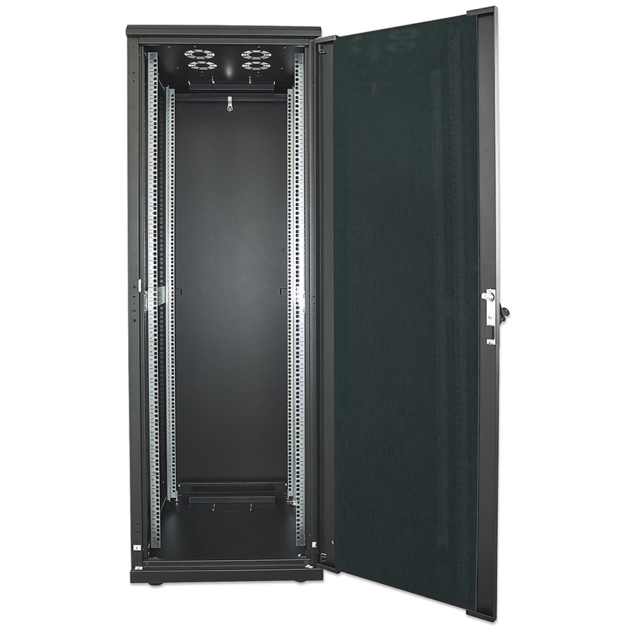 Ideal para todas las aplicaciones de montaje en rack de 19puerta de cristal templadopostes de montaje de 19 pulgadas, galvanizadoscubierta en polvo antiestatico en todos los panelespaneles con grosor de hasta 2 mm de acerocubierta calificada como ip20paneles laterales y traseros facilmente desmontablescerradura multipunto de puertados aperturas permiten la entrada del cable por la parte superior o inferiorranuras de ventilacion que brindan un excelente flujo de aire