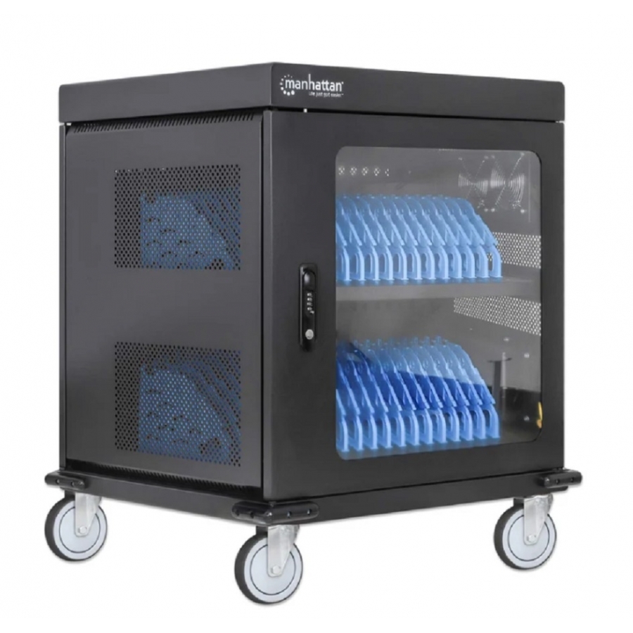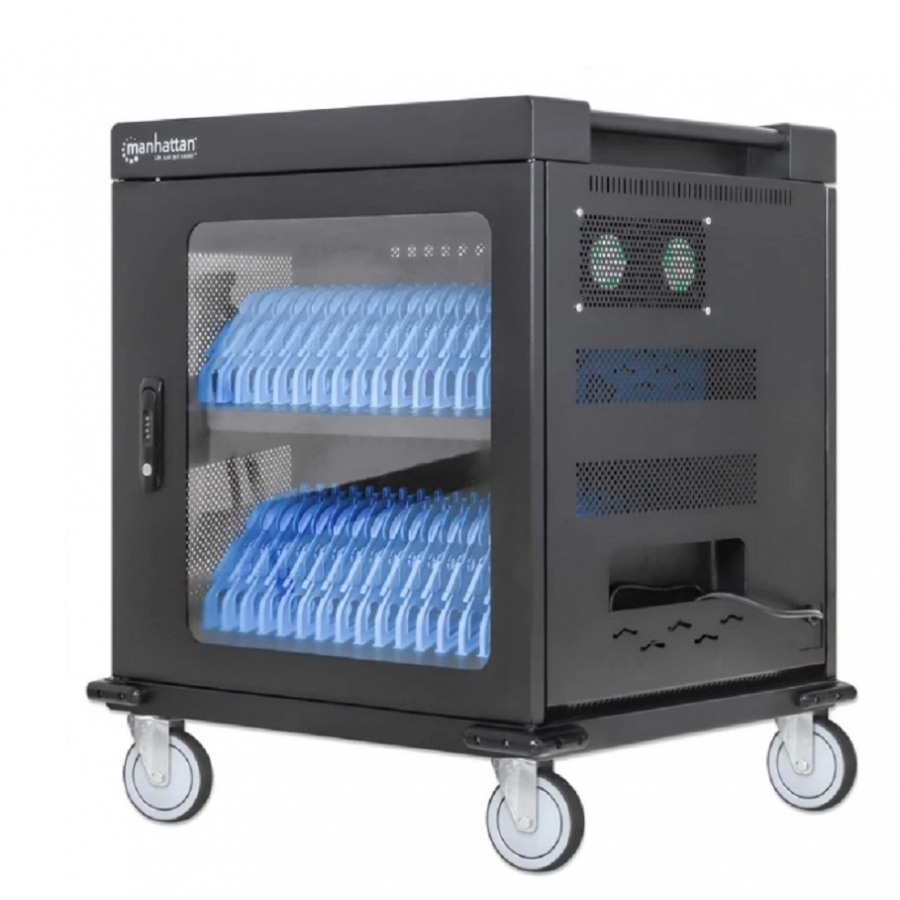 Solucin de carga mvil para entornos educativos, hostelera y máscargar y almacenar dispositivos es fácil con el carrito de carga de ca de 32 puertos de manhattan. Es la solucin ideal para mantener los dispositivos listos y seguros en escuelas, restaurantes, gimnasios, consultorios mdicos, universidades, hoteles, agencias de alquiler de automviles y más, as podrás brindar asistencia y soporte de manera efectiva y eficiente a tus estudiantes, invitados, pacientes, clientes y patrocinadores.excelente para todos los dispositivos, desde telfonos inteligentes hasta laptopslas salidas de ca integradas en las pdu en la parte posterior de la unidad facilitan la carga de dispositivos como laptops, notebooks, tabletas, telfonos y muchos otros mediante sus adaptadores de corriente o cargadores de pared. Los encargados tienen acceso a travs de la puerta posterior de la unidad para conectar los dispositivos electrnicos a los tomacorrientes y as mantenerlos cargados.seguridad fsicala carcasa de acero resistente y duradera de este carrito de carga ofrece una seal visible de administracin y proteccin profesional de dispositivos. La cerradura de las puertas delantera y trasera se puede abrir con una combinacin de cuatro dgitos o con las dos llaves incluidas para ayudar a mantener seguros los dispositivos mientras se cargan o cuando no están en uso. Las ruedas de servicio pesado te permiten mover el carro a donde lo necesites; los bloqueos de las ruedas te permiten asegurarlo rápidamente en su lugar.organizado y versátilmantn tus dispositivos organizados en el gran espacio que ofrecen las ranuras 15.7 x 1.2 x 11 pulgadas cada una, incluso para estuches voluminosos. Los clips de gestin de cables incorporados en los divisores te permiten estructurar los cables de carga los cables USB están disponibles en manhattan para una mejor organizacin y una apariencia más limpia. El cable de alimentacin incluido es extrable para un mejor almacenamiento.guarda y carga de forma segura laptops y otros dispositivos de hasta 15.632 tomas de corriente alterna nema 5-15r, integradas en la parte posteriorsistema inteligente de gestin de la energa que evita la sobrecarga en cualquier momentoproteccin contra sobrecarga, sobrecorriente, cortocircuito y picos de tensin.puerta de seguridad frontal con acero y cristalcarcasa metálica robusta y segura con recubrimiento en polvo; cierre de puerta de tres puntos en la parte delantera y trasera; se puede cerrar con dos llaves incluidas o con una combinacin de cuatro dgitos.amplias ranuras para dispositivos 15.7 x 1.2 x 11 pulgadas cada una con gestin de cables integrada en los separadores.ventilador silencioso con ranuras de ventilacin para un flujo de aire y máxima eficiencia de enfriamientoasa incorporada y cuatro ruedas de alta resistenciabordes redondeados para evitar lesiones en entornos con mucho tráficose incluye un kit de puesta a tierraadaptador de corrientre externo, aprobado por ulentrada de ca universal con conector c14; cable de alimentacin con conector c13 a ee.uu. Incluidono incluye cargadores ni cables de carga disponibles por separado en manhattan