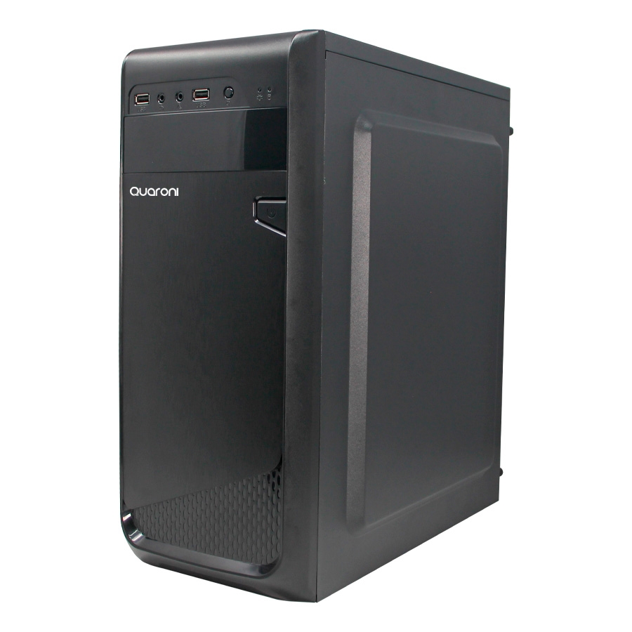 Gabinete media torre quaroni color negro acabado cepillado material: metal y plasticotarjetas madre soportadas: atx/micro atx/mini itxdiscos duros y unidades opticas: 2 * 3.5 HDD/ 2 *2.5 ssdranuras pci: 7ventilador: espacio frontal 1* 12 cm, espacio trasero 1 * 8 cm, espacio lateral 1* 12 cm, no incluidos.puertos USB: 1 * USB 2.0, 1 * USB 2.0puertos audio: 2fuente de poder: 500 w