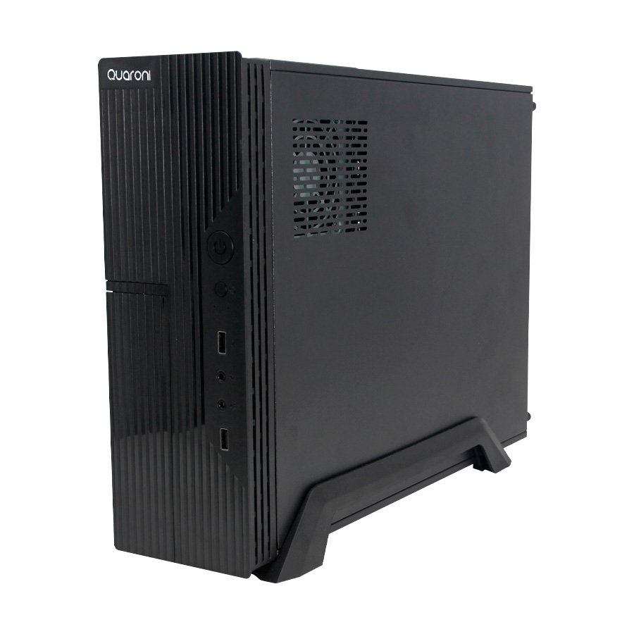 Gabinete slim quaroni acabado lineal material: metal y plasticotarjetas madre soportadas: micro atx/ mini itxdiscos duros y unidades opticas: 1* 3.5 HDD/ 1* 2.5 ssdranuras pci: 4ventilador: espacio para 1*8 cm (no incluido)puertos USB: 2* USB 2.0puertos audio: 1*salida de audio 3.5 mm, 1* entrada para microfono 3.5 mm