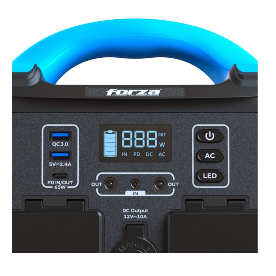 Generador Electrico De Baterias Lmfp Portatil Forza Serie Titan FPP-T300 300W 8 Salidas 2AC/6DC 2 Pantalla Lcd Panel De Control Integrado Lampara LED Carga Rapida En 2 Horas