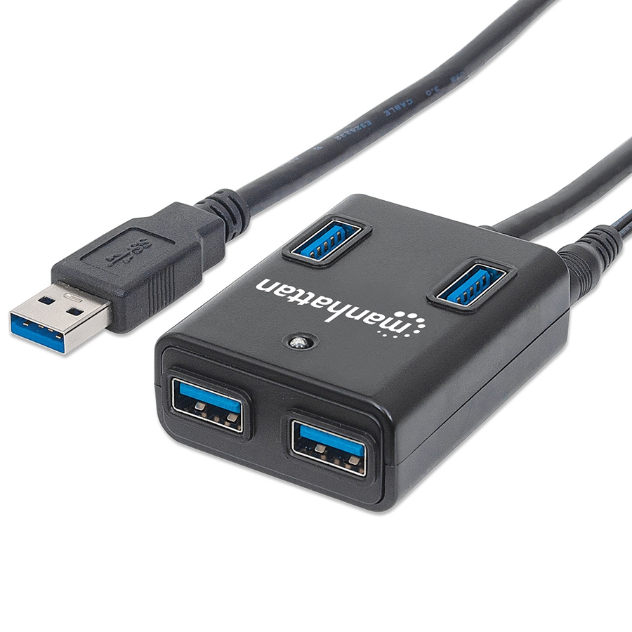 Hub Usb,Manhattan,162302, V3.0 4 Ptos Con Fuente, Negro