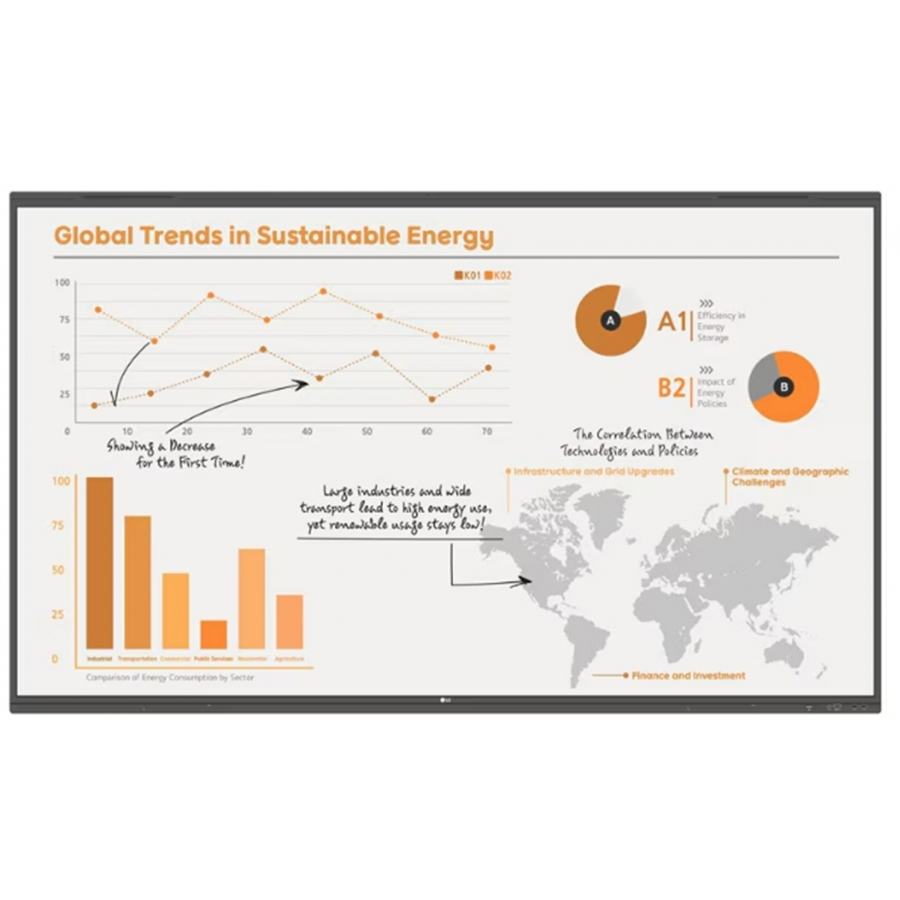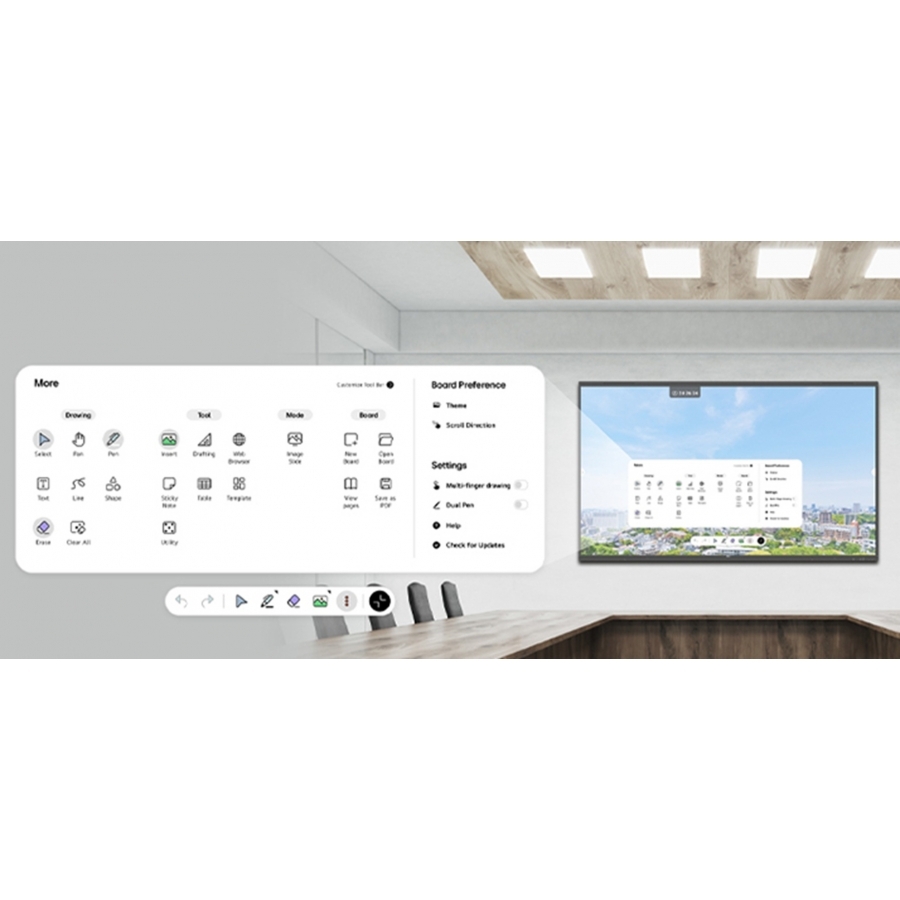 Solucin creativa de pizarralg createboard ofrece una experiencia táctil realista, permitiendo a los usuarios interactuar con el contenido directamente en la pizarra. Puedes escribir, dibujar, hacer zoom y rotar con solo los dedos, lo que la convierte en una herramienta eficaz para proyectos creativos o presentaciones. Además, LG createboard permite compartir pantalla y contenido, lo que la convierte en una herramienta excelente para una colaboracin fluida incluso con equipos remotos.varias plantillas de enseanzalg createboard ofrece una variedad de plantillas y herramientas educativas, como una regla, una tabla y notas adhesivas, que fomentan la participacin activa de los estudiantes y facilitan lecciones intuitivas.fácil de guardar/importar/exportarlg createboard incorpora funciones sencillas de importacin y exportacin. Los recursos se pueden guardar e importar directamente desde y hacia google drive o onedrive. Despus de las reuniones, puedes enviar correos electrnicos para compartir materiales o escanear un cdigo qr para transferirlos a tu dispositivo.laboratorio LG createboardsoftware de pizarra patentado de lgherramientas para la colaboracin fluidadisponemos de diversas herramientas, como calculadora, reloj y notas adhesivas, para facilitar las conversaciones y garantizar un intercambio de ideas fluido. Además, los usuarios pueden personalizar la barra de men con las herramientas que usan con más frecuencia, mejorando as su eficiencia laboral.navegador webcuando necesite una referencia durante una discusin, puede acceder a informacin diversa en tiempo real con un simple clic en un navegador web. La informacin necesaria que se encuentra en internet se puede arrastrar y soltar fácilmente en el material que está creando, lo que mejora la productividad de sus reuniones.efecto de atencincon solo tocar dos veces la pantalla de LG createboard con 4 o 5 dedos, aparecerá un smbolo de atencin con un sonido. Esta funcin facilita captar la atencin de los participantes cuando se necesita que se concentren.LG createboard compartirlg createboard share ofrece una funcin de pantalla compartida inalámbrica, que proporciona a los usuarios un entorno de discusin flexible. Los usuarios pueden compartir su pantalla desde sus propios dispositivos, simplificando as el proceso de compartir y colaborar en proyectos de equipo o presentaciones.funcin de compartir pantalla inalámbrica para un entorno de reuniones sin interrupcioneslg createboard share crea una sala de reuniones fluida y estable sin necesidad de cables ni conexiones adicionales. Los presentadores ahora pueden compartir sus pantallas sin tener que desplazarse ni conectar cables cada vez que cambian de presentador. Con la capacidad de compartir hasta 9 pantallas en tiempo real, es posible mostrar el material de varias personas simultáneamente cuando sea necesario, mejorando as la eficiencia de la colaboracin.conexin sencilla a LG createboard sharelos usuarios pueden usar fácilmente la funcin de compartir pantalla inalámbrica a travs de la app LG createboard share. Incluso sin ella, pueden acceder cmodamente a esta funcin a travs del sitio web. Se puede establecer una conexin rápida con LG createboard share ingresando un cdigo de 6 dgitos.comodidad y flexibilidad en las presentaciones en la sala de reunionesla pantalla compartida inalámbrica permite a los presentadores navegar libremente por la sala de reuniones, sin cables. Esta funcin les permite controlar sus presentaciones sin problemas desde sus dispositivos. Además, pueden enviar fotos y vdeos almacenados en sus dispositivos personales, lo que mejora la fluidez y la riqueza de sus presentaciones.conveniencia y flexibilidad en las presentaciones en el aulaen el aula, el profesor o presentador no necesita impartir la clase cerca de la pizarra LG createboard, sino que puede hacerlo con flexibilidad desde cualquier lugar. Esto promueve un ambiente de clase más flexible y ayuda a mantener a los estudiantes más concentrados.modo segurolg createboard share es compatible con el modo seguro, que permite a los usuarios otorgar permisos para compartir. Esto permite evitar que se comparta contenido no autorizado.sistema de gestin de datos LG connectedcarelg connectedcare dms es una solucin en la nube para supervisar, controlar y gestionar remotamente el estado de LG createboard y las pantallas de sealizacin. Esta funcin permite a los administradores de ti operar y gestionar recursos importantes en dispositivos operativos sin necesidad de desplazarse fsicamente.panelel panel de control dms de LG connectedcare le permite ver y monitorear mltiples dispositivos al mismo tiempo, ahorrando as tiempo y aumentando la eficiencia.control remotoel LG connectedcare dms permite un control centralizado y sencillo de la sealizacin digital conectada al sistema. Funciones frecuentes como el encendido/apagado, la programacin y el ajuste del brillo de la pantalla se pueden aplicar de forma remota.radiodifusinse pueden enviar mensajes y otros contenidos desde el sistema principal a dispositivos individuales conectados a LG connectedcare dms. Los eventos o anuncios de la empresa se pueden transmitir remotamente desde el sistema central al instante.mensaje de alertaen caso de situaciones urgentes, como un incendio o un desastre natural, se pueden distribuir mensajes de alerta manualmente en todo el sistema, lo que ayuda a los profesores y estudiantes a percibir rápidamente la situacin y tomar medidas de seguridad rápidamente.certificacin de googlelg createboard ha recibido la certificacin de google, lo que permite a los usuarios integrarse perfectamente con el ecosistema de google conectando sus cuentas de google.tienda google play