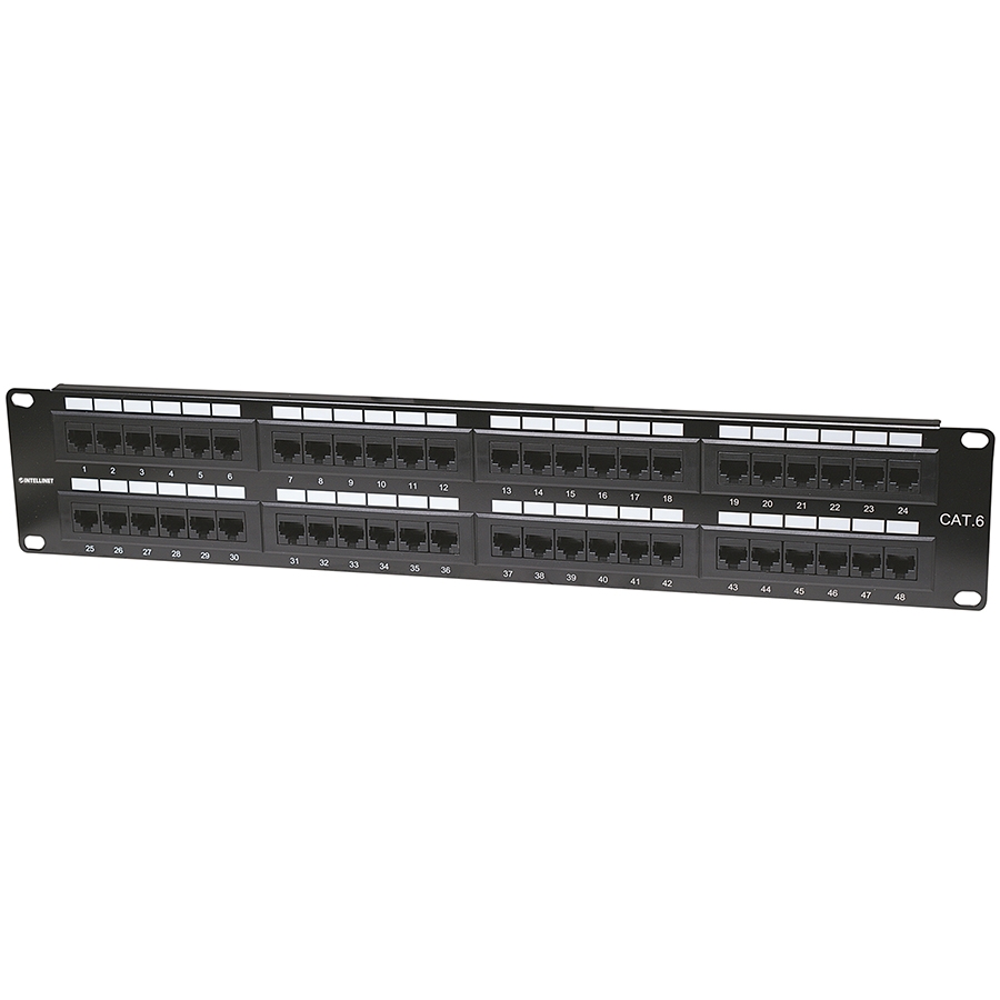 Panel Parcheo,Intellinet,560283, Cat 6, 48 Ptos 2 Niv. Rack