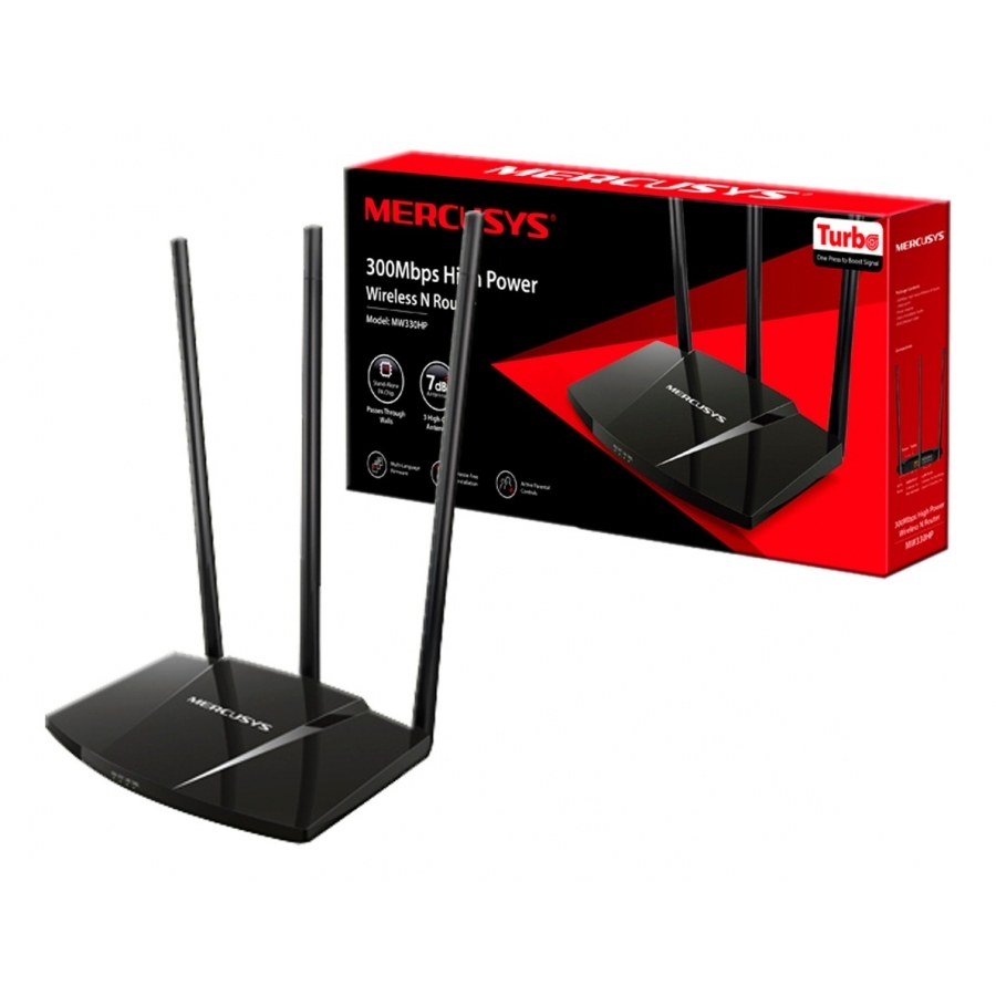 Router inalámbrico N de alta potencia de 300MbpsMW330HP* Velocidad inalámbrica de 300Mbps: ideal para la transmisión rápida de video, juegos en línea y descargas de archivos* Botón Turbo: mejora instantáneamente la señal de Wi-Fi y expande la cobertura inalámbrica* Chip PA: proporciona una potencia de transmisión de hasta 2x, lo suficientemente fuerte como para penetrar en las paredes y otros obstáculos* Antenas de 7dBi de alta ganancia: aumenta considerablemente el alcance y la cobertura inalámbricos* Instalación sencilla: la página web intuitiva lo guía a través del proceso de configuración en minutosCobertura ampliada de Wi-Fi y conexiones establesEl MW330HP usa el botón Turbo, el chip PA autónomo y las antenas de 7dBi de alta ganancia para brindar una experiencia inalámbrica superior. Con una cobertura Wi-Fi ampliada y conexiones estables, puede disfrutar de Internet en cada rincón de su hogar.Chip de PA independienteSuperando a una parte interna de la CPU, el amplificador de potencia independiente (PA) proporciona hasta 2 veces la potencia de transmisión, lo que garantiza que su señal inalámbrica sea lo suficientemente fuerte como para penetrar en las paredes y otros obstáculos.Tres Antenas 7dBiLas antenas de alta ganancia pueden aumentar el alcance y la cobertura inalámbrica, haciendo que todas sus conexiones sean más fuertes.Instalación en tres pasosSin la necesidad de una configuración complicada, simplemente puede seguir las instrucciones paso a paso en la página web intuitiva para configurar su MW325R en minutos.1 / Crear una contraseña de inicio de sesión única2 / Elija su servicio de Internet y complete la información requerida.3 / Configure su nombre de red inalámbrica (SSID) y contraseña* Wi-Fi de 300Mbps: Ideal para la transmisión rápida de videos, juegos en línea y descargas de archivos* Botón WPS: Establezca una conexión encriptada con solo presionar el botón WPS* Controles parentales: Los padres pueden establecer políticas apropiadas para controlar el acceso a Internet de los niños(Las velocidades máximas de señal inalámbrica son las velocidades físicas derivadas de las especificaciones IEEE Standard 802.11. El rendimiento real de los datos inalámbricos y la cobertura inalámbrica no están garantizados y variarán como resultado de 1) factores ambientales, incluidos los materiales de construcción, objetos físicos y obstáculos, 2) las condiciones de la red, incluidas la interferencia local, el volumen y la densidad del tráfico, la ubicación del producto, la complejidad de la red y la sobrecarga de la red, y 3) las limitaciones del cliente, incluido el rendimiento nominal, la ubicación, la conexión, la calidad y la condición del cliente)
