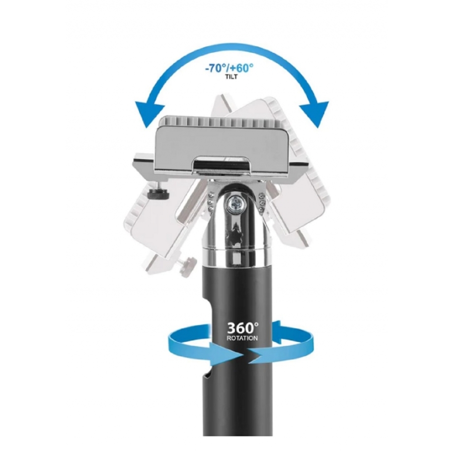 GeneralidadesInclinación: +60 a -70°Giro: 360°Brazos extensibles:- Ancho ajustable: 69 a 109 mmDimensiones del poste (largo x ancho x alto): 38 x 38 x 250 mmDimensiones de la base (largo x ancho x alto): 74 x 74 x 23 mmPeso neto: 670 gPeso bruto: 780 gMateriales: aluminio, acero, aleación de zinc y plásticoContenido del paqueteSoporte Universal para Terminal Punto de Venta (para terminal de tarjeta de crédito)Piezas para montaje y herramienta