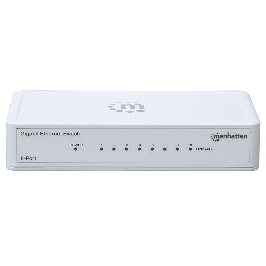Agregue fácilmente los dispositivos Ethernet para su red doméstica o de oficina a velocidades GigabitEl switch Ethernet Gigabit de 8 puertos Manhattan es perfecto para la oficina en casa o el uso del sistema de entretenimiento, así como muchas aplicaciones de oficina.Pequeño, potente y confiable, este switch Gigabit Ethernet es fácil de instalar y permite conectar hasta ocho dispositivos – computadoras, consolas de videojuegos, impresoras en red, media streamers, soluciones de almacenamiento conectado a red, televisores inteligentes que corran a velocidades de hasta 1000 Mbps (1 Gigabit) a través de cables Cat5e o Cat6.Las características de este switch hacen la instalación plug and play sin complicaciones. Además tiene la tecnología Green Ethernet lo que le permite controlar el uso de energía y apagar puertos no utilizados para ahorrar electricidad.Switch Gigabit Ethernet de 8 puertos amplía su red en un instanteInstalación sencilla plug-and-play – tan sólo conéctelo y comience a usarloOcho puertos 10/100/1000 de detección automática detectan automáticamente la velocidad óptima de la redAlto desempeño, half y full dúplex, sin pérdida de paquetesLa función Green Ethernet desactiva el consumo de corriente en los puertos no utilizadosSoporta cualquier combinación de dispositivos de red 10 Mbps, 100 Mbps ó 1 GbpsUltra-compacto, diseño sin ventilador ideal para aplicaciones del hogar y de la oficinaArquitectura de intercambio de almacenaje y envío