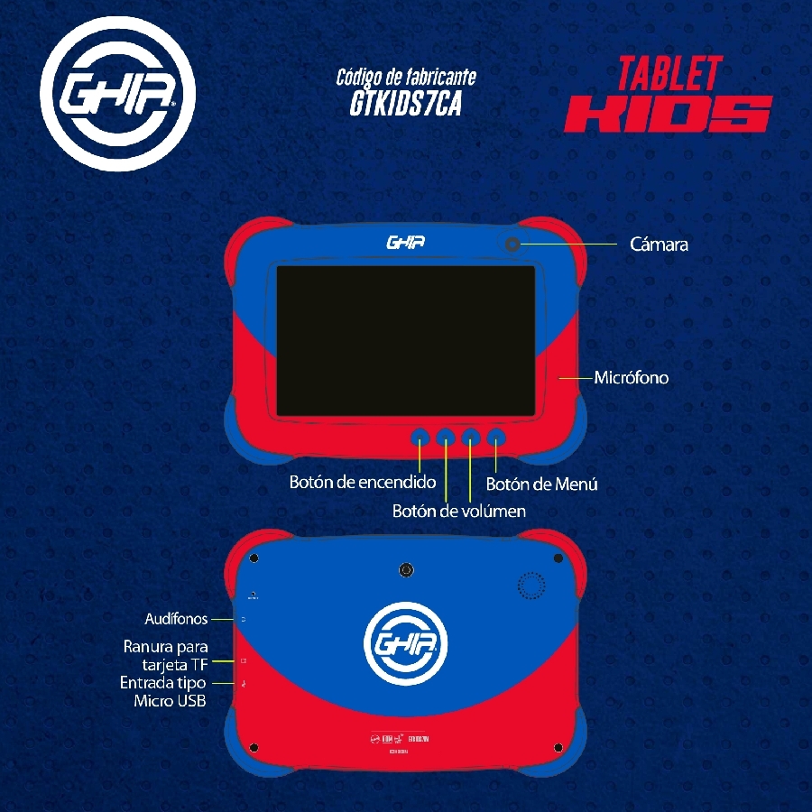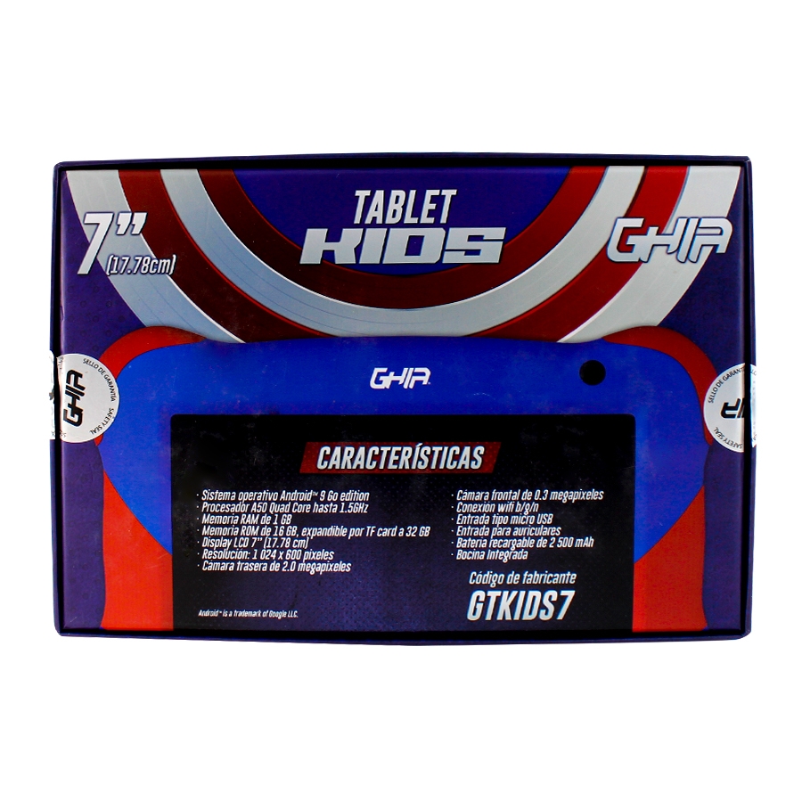 Tablet Ghia 7 KIDS/A50 QUADCORE/1GB RAM/16GB /2CAM/WIFI/BLUETOOTH/2500MAH/ANDROID 9 /Azul
