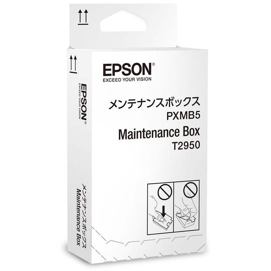 La caja de mantenimiento de tinta t2950 almacena tinta que se descarga del sistema durante la limpieza del cabezal de impresión. Su impresora y su software le harán saber cuando es necesario reemplazar la caja de mantenimiento.