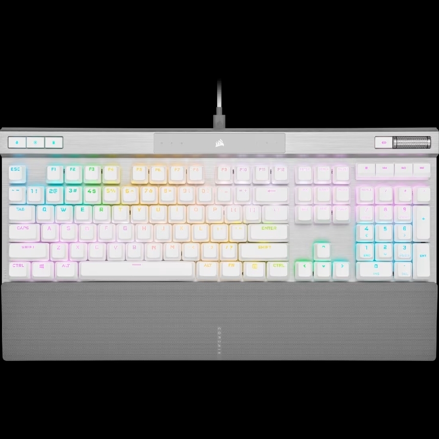 Teclado Corsair K70 Rgb Pro/ Óptico-Mecánico/ LED Rgb Retroiluminado /Corsair Opx/Blanco/ Teclas Pbt Blancas/ Ingles (CH-910951A-NA)