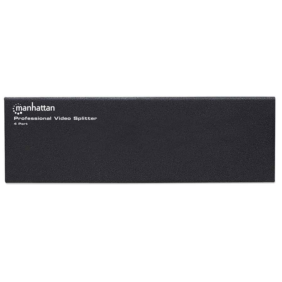 Estandares y certificaciones fcc ce iso9002http://www.manhattan-products.com/es-us/products/8937-v-deo-splitter-profesionalgeneral LED indicador: alimentacion (verde) longitud del cable, maxima: 65 m conector de entrada: 1 hd15 macho; salida, 4 hd15 hembra adaptador de corriente: 9 v ac, 300 masenal ancho de banda: 350 mhz tipos: vga, svga, multi-sync voltaje de entrada, minimo: 0.5 v p-p voltaje de entrada, maximo: 1.0 v p-p impedancia de e/s: 75 ohms alcance de la computadora al multiplicador (video splitter): 7.5 m alcance del multiplicador de senal al monitor: 65 mresolucion resolucion: 1920 x 1680 frecuencia horizontal: 30 – 120 khz frecuencia vertical: 40 – 120 hzpuertos 1 hd15 macho 4 hd15 hembra 1 puerto de alimentacion 9 v, 1000 madiseno chasis: metalico dimensiones: 133 x 94 x 42 mm peso: 396 gcontenido del paquete video splitter profesional manual del usuario